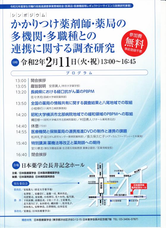 シンポジウム「かかりつけ薬剤師・薬局の多機関・多職種との連携に関する調査研究」(渋谷区)