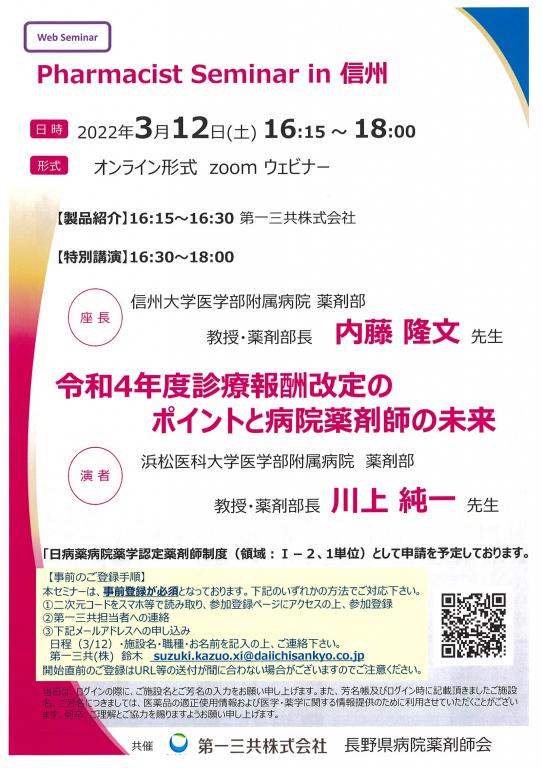 長野県病院薬剤師会講演会「Pharmacist Seminar in 信州」【WEB研修】