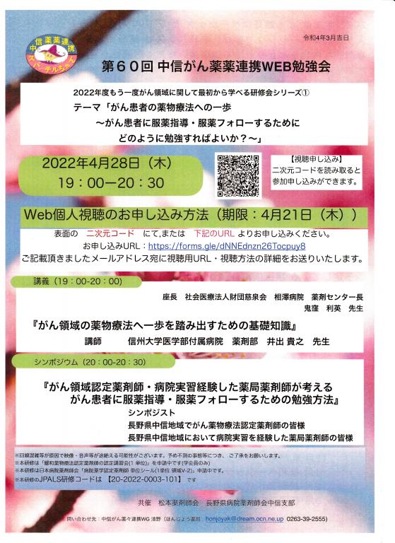 長野県中信地域でがん薬物療法認定薬剤師の皆様