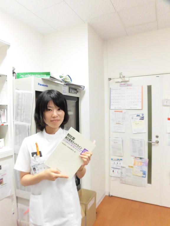 私が働く病院の薬剤師の仕事は、大きく調剤室・注射管理室・化学療法室・病棟業務に分けられます。働き始めてから5か月経ち、今は業務内容を覚えることが主ですが、病院薬剤師は医学と薬学の知識を深めていきたい方にとって魅力的な職業です。医師や看護師などが書いたカルテを見て症状と薬がどう結びついているのか考え、病院内での勉強会、近隣の病院・薬局での研修会、各地で開催される学会に参加するチャンスがあるので、薬学の最新の情報を得られ知識を学べる環境が与えられています。