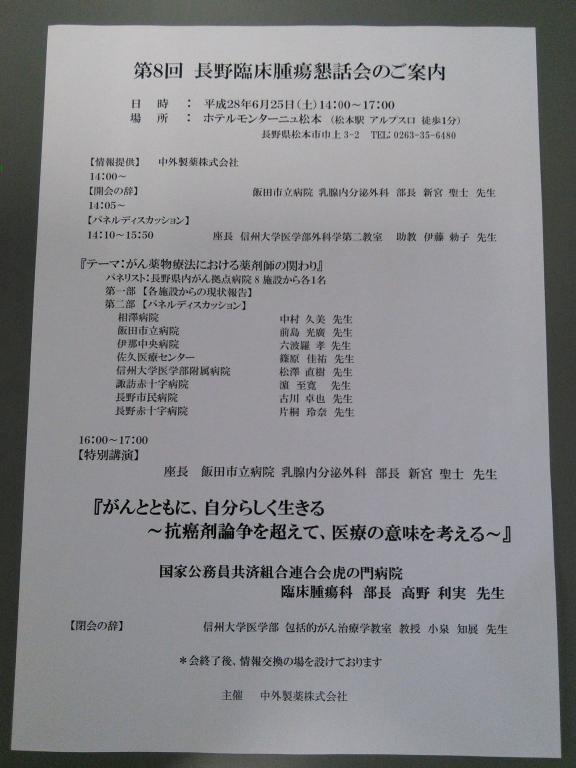 6月25日に松本市で行われた『第8回長野臨床腫瘍懇話会』に参加してきました。