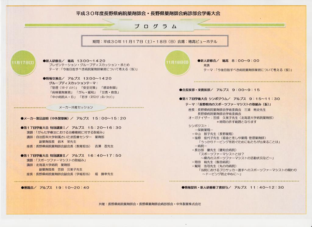 平成30年度 長野県病院薬剤師会・長野県薬剤師会病診部会学術大会を以下のとおり開催いたします。