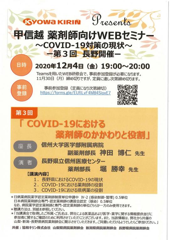 甲信越 薬剤師向けWEBセミナー第3回長野開催 ~COVID-19対策の現状~