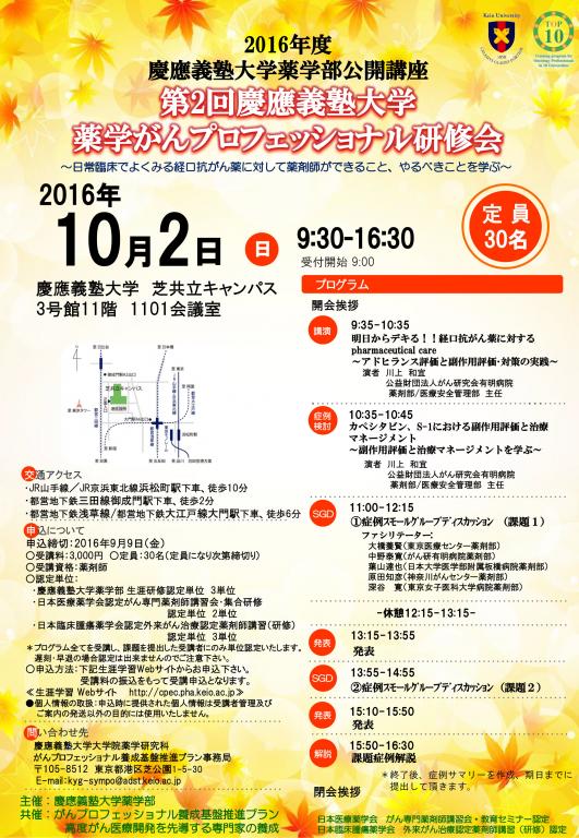 第2回慶應義塾大学 薬学がんプロフェッショナル研修のお知らせ