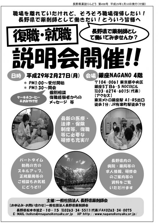 長野県における薬剤師不足に対して、銀座NAGANOを利用し開催出来る運びとなりました。