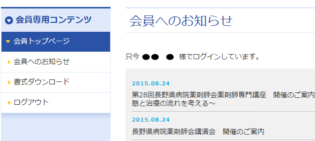 2015年09月03日 HPのバージョンアップ ウェブマスター 1.ログイン時にログイン者の名称が表示できるように修正しました。これによりログインをしているかどうかの確認が画面上でわかるようになりました。 2.県薬ひろばで写真情報のレイアウトを変更しました。